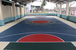Esta intervención es integral e incluye el levamiento de columnas y paredes; el cerramiento total de las canchas con malla; la reparación de arcos y aros; pintura en todo el espacio y en las canchas con la señalización adecuada para la práctica de diferentes disciplinas deportivas.